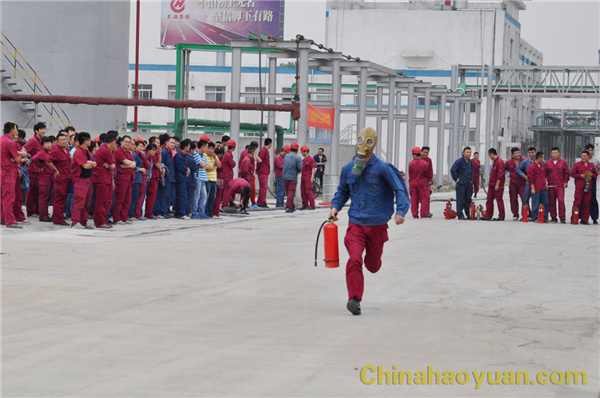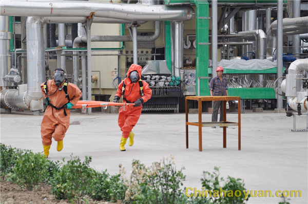 2014年5月27日下午四點, 凈化車間團支部聯(lián)合氣化車間團支部舉辦航天爐系統(tǒng)防護用品使用演練比賽。公司副總經(jīng)理張海生、工會副主席戚偉、安全科副處長李偉、生產(chǎn)辦副主任及濤、團委書記馮婷婷、綜合辦主任吳珍漢等特邀觀摩比賽。