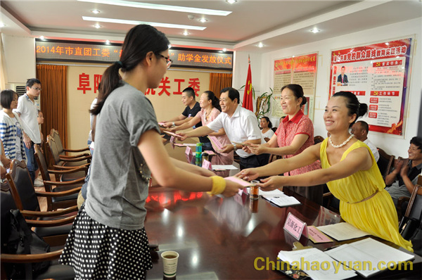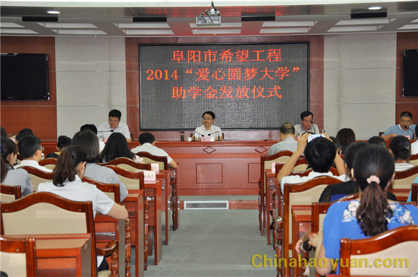 8月21日,阜陽團市委舉行2014年希望工程“愛心圓夢大學”助學金發(fā)放儀式,阜陽市副市長方旭出席儀式。