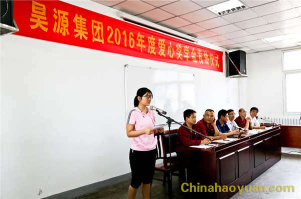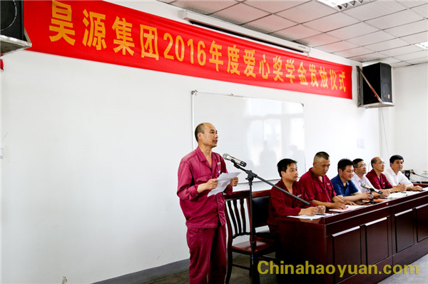 公司副總經(jīng)理張海生宣讀獲得獎(jiǎng)學(xué)金同學(xué)名單,并代表昊源集團(tuán)全體員工對(duì)獲得獎(jiǎng)學(xué)金的同學(xué)們表示祝賀,向?yàn)樽优逃冻鲂燎趧趧?dòng)的家長(zhǎng)們致以崇高的敬意。