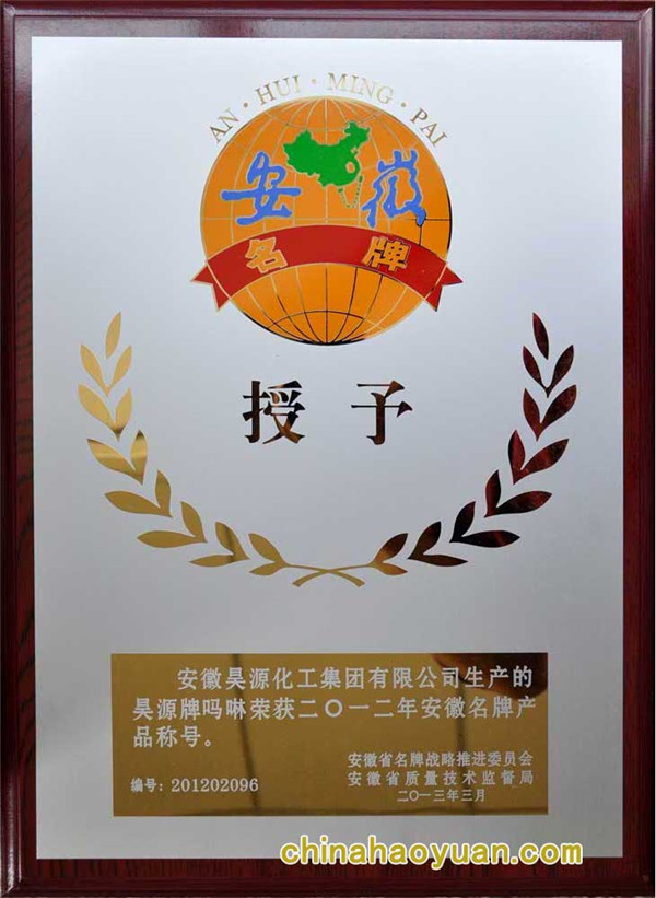為大力宣傳安徽名牌,引導(dǎo)企業(yè)樹(shù)立名牌意識(shí),進(jìn)一步推進(jìn)全省名牌發(fā)展戰(zhàn)略的實(shí)施,省質(zhì)量技術(shù)監(jiān)督局將對(duì)獲得2012年安徽名牌稱(chēng)號(hào)和通過(guò)名牌復(fù)審的企業(yè)予以表彰,公司“昊源牌嗎啉”位于2012年復(fù)審?fù)ㄟ^(guò)的安徽名牌企業(yè)名單之列。