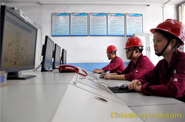 化工車間操作人員在精心操作