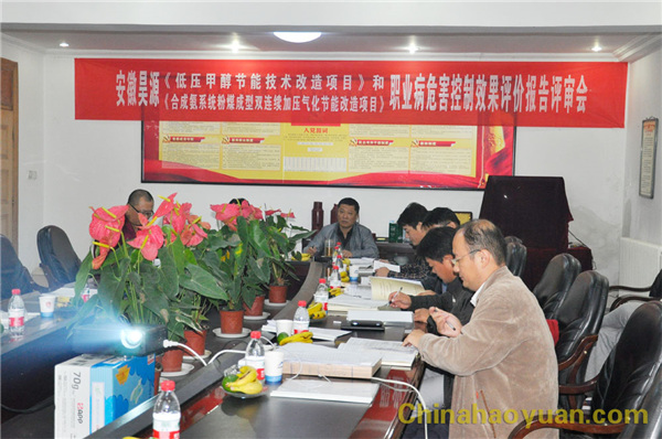 昊源公司《低壓甲醇節(jié)能技術改造項目》和《合成氨系統(tǒng)粉煤成型雙連續(xù)加壓氣化節(jié)能改造項目》職業(yè)病危害控制效果評價報告評審會于9月26日在公司一號會議室舉行。市安監(jiān)局、市衛(wèi)生局的領導和專家出席。