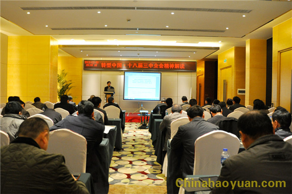王曙光教授從黨的十八屆三中全會決議內容,結合國際、國內經濟環(huán)境,深入解讀了十八屆三中全會精神對工業(yè)、農業(yè)、環(huán)境、醫(yī)療等領域的影響。如何緊抓國家改革方向,快速推動企業(yè)健康發(fā)展等,也進行了深入解讀。