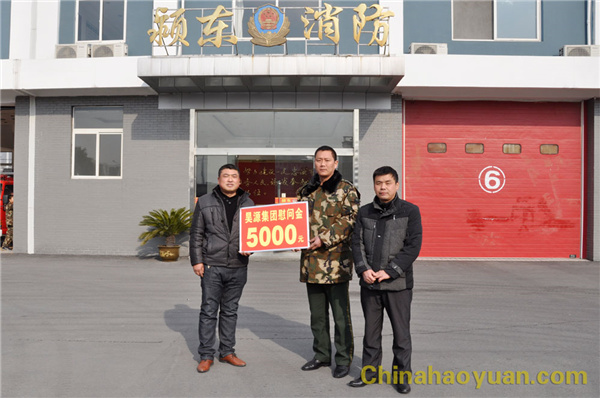 高明林將飽含昊源職工深切之情的慰問金轉(zhuǎn)交給隊(duì)領(lǐng)導(dǎo),并轉(zhuǎn)達(dá)了公司黨政領(lǐng)導(dǎo)對穎東消防官兵的親切慰問。