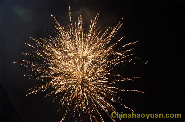 19點(diǎn)28分,在昊源集團(tuán)正門(mén)前的上空,伴隨著震耳欲聾的禮炮聲,2014年元宵煙花燃放正式拉開(kāi)帷幕。各色禮花由低到高、由緩到急、由小到大、由疏到密,各種花卉造型的煙花在夜空中流光溢彩,次第開(kāi)放,高空銀閃瀑布猶如銀河落九天。一幅幅美艷奪目的畫(huà)面,構(gòu)成詩(shī)的意境、花的海洋??粗粋€(gè)又一個(gè)美景在夜空升起,人們不禁大聲歡呼,續(xù)而又爆發(fā)出陣陣掌聲。此時(shí),路邊的觀眾紛紛拿出手中的相機(jī)、手機(jī),搶先記錄下這兒美好的一刻,煙花和人群構(gòu)筑了一幅美麗畫(huà)面,預(yù)示著新的一年里人民生活幸福、社會(huì)和諧、祖國(guó)昌盛。