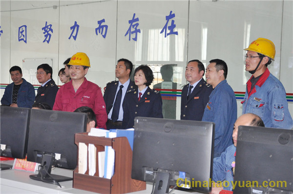 張永強一行首先深入到公司生產(chǎn)一線,實地察看了3#尿素生產(chǎn)裝置和公司重點建設項目航天爐工程建設情況。在航天爐系統(tǒng)操作室,綜合辦主任吳珍漢向張永強一行簡要匯報了航天爐項目運行情況。昊源公司航天爐項目一期已開車運行一年多,裝置運行穩(wěn)定,節(jié)能減排效果顯著。二期工程試車工作已全部結(jié)束,預計4月中旬可全部投料生產(chǎn)。