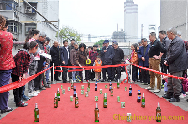 運(yùn)動會項目為心靈手巧 (快樂套圈游戲)、心花怒放(吹乒乓球游戲)、心有靈犀(投擲羽毛球游戲)、心明眼亮(投筷子入啤酒瓶比賽)等四個項目, 100多名退休老職工參加趣味比賽。