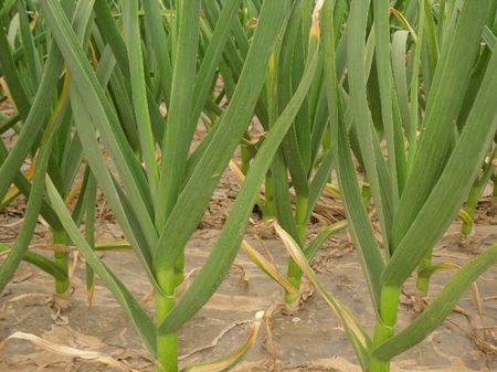 葉面追肥在秋大蒜生長發(fā)育期間,必須每7~10天葉面噴施一次0.1%硫酸鎂、0.2%尿素、0.3%磷酸二氫鉀、300倍硝酸鈣、1000倍植物高效平衡營養(yǎng)液、1000倍天然蕓苔素混合液,連續(xù)噴灑8~10次,均勻噴濕所有的莖葉,以開始有水珠往下滴為宜。