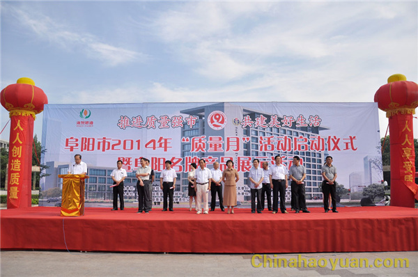 9月5日上午,清河廣場人山人海,商企云集。2014年阜陽市“質(zhì)量月”活動啟動儀式及阜陽名牌產(chǎn)品展示活動在清河廣場隆重舉行。市長李平、副市長操龍燦等領(lǐng)導出席啟動儀式。市質(zhì)監(jiān)局和潁泉、潁州、潁東三區(qū)市場監(jiān)管局工作人員,安徽昊源化工集團有限公司、阜陽華聯(lián)集團、海泉糧油公司等阜陽明星企業(yè)的員工參加啟動儀式。