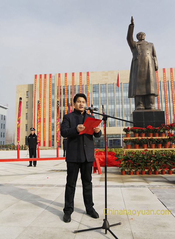 12月26日上午,昊源集團有限公司阜陽煤基新材料產(chǎn)業(yè)園區(qū)項目行政大樓落成暨毛主席銅像揭幕儀式隆重舉行。昊源公司黨委書記、董事長凡殿才等公司高管出席本次儀式,副總經(jīng)理高明林主持儀式。