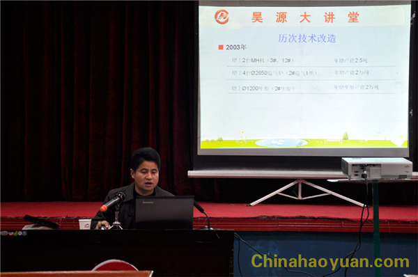 11月21日,昊源大講堂正式開講。昊源公司常務(wù)副總經(jīng)理凡殿才以《昊源化工技術(shù)進(jìn)步歷程和生產(chǎn)主管的幾點心得體會》為題作精彩演講。
