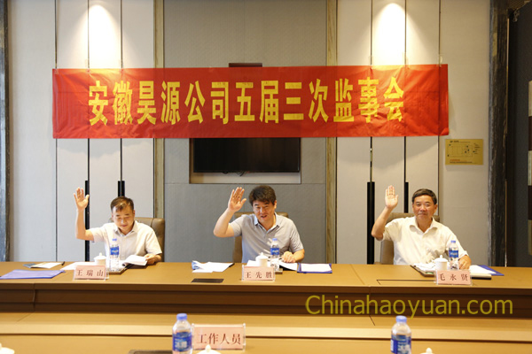 2018年6月22日,昊源公司五屆三次監(jiān)事會在阜陽勝利召開。會議由監(jiān)事會主席王先勝主持,公司監(jiān)事毛永賢、王瑞山出席會議。