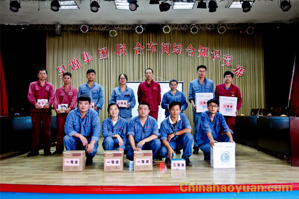 為豐富青年員工的業(yè)余生活,促進(jìn)青年員工之間交流,提升員工對企業(yè)文化的認(rèn)同以及提高員工業(yè)務(wù)技能,聯(lián)合車間團(tuán)支部于8月23日在公司大禮堂舉行“聯(lián)合車間綜合知識競賽”。聯(lián)合車間維修班與操作三個班組成四組參賽,車間全體員工現(xiàn)場觀看比賽。