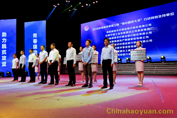 昊源公司自2006年,連續(xù)12年參與共青團(tuán)阜陽(yáng)市委組織的“愛(ài)心圓夢(mèng)大學(xué)”助學(xué)活動(dòng),資助120余名優(yōu)秀大學(xué)生,幫助他們順利實(shí)現(xiàn)大學(xué)夢(mèng)。
