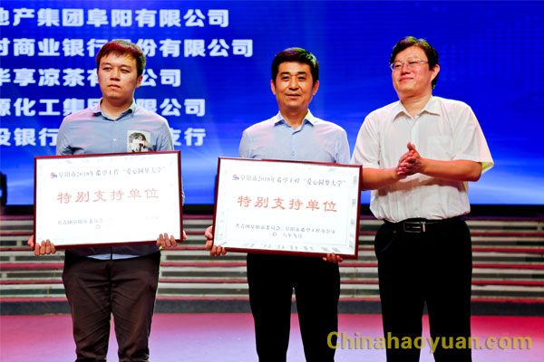 會(huì)上,共青團(tuán)阜陽(yáng)市委員會(huì)、阜陽(yáng)市希望工程辦公室授于安徽昊源化工集團(tuán)有限公司阜陽(yáng)市2018年希望工程“愛(ài)心圓夢(mèng)大學(xué)”特別支持單位,戚偉代表昊源集團(tuán)領(lǐng)取獎(jiǎng)牌。
