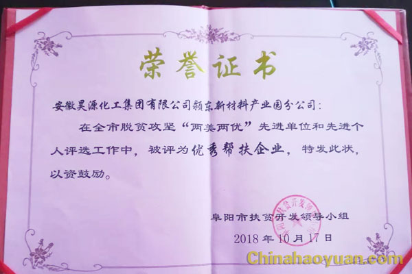 近日,阜陽市扶貧開發(fā)領導小組對全市脫貧攻堅“兩美兩優(yōu)”先進單位和先進個人進行評選表彰,安徽昊源化工集團有限公司潁東新材料產(chǎn)業(yè)園分公司獲評“優(yōu)秀幫扶企業(yè)”榮譽稱號。