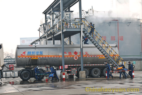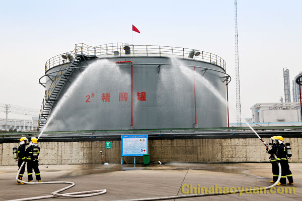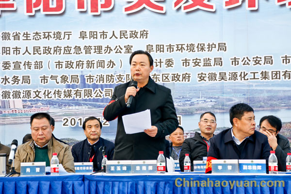 12月20日,2018年安徽省阜陽市突發(fā)環(huán)境事件應(yīng)急演練在昊源公司舉行。演練以昊源公司航天爐系統(tǒng)2號4000立方米甲醇儲罐甲醇充裝連接軟管泄漏、靜電起火,在處置過程中,甲醇廢水通過公司雨水管網(wǎng)溢流進(jìn)入駱家溝,并伴有大量甲醇揮發(fā)為假想。阜陽市委常委、副市長王玉峰任演練總指揮。