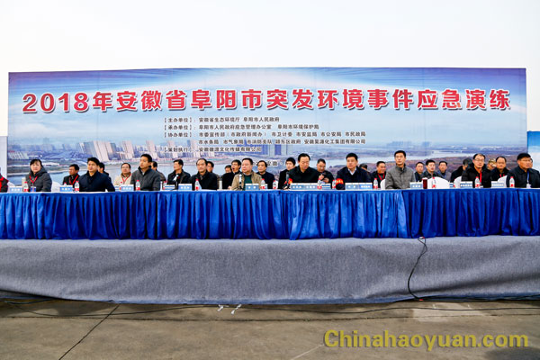 本次演練由安徽省生態(tài)環(huán)境廳、阜陽市人民政府主辦,市政府應(yīng)急辦、市環(huán)境保護(hù)局承辦,市委宣傳部、市政府新聞辦、市衛(wèi)計(jì)委、市安監(jiān)局、市公安局、市民政局、市水務(wù)局、市氣象局、阜陽消防支隊(duì)、潁東區(qū)政府、昊源化工等協(xié)辦。以上單位相關(guān)領(lǐng)導(dǎo)、安徽省其它縣市環(huán)境負(fù)責(zé)人、昊源化工部分員工現(xiàn)場觀摩演練。
