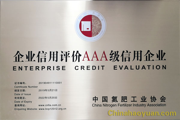 中國氮肥工業(yè)協(xié)會聘請北京國富泰信用管理有限公司第三方信用評價機構(gòu),根據(jù)企業(yè)提交的2015至2017年申報材料及相關(guān)信息核查,依據(jù)《中國氮肥工業(yè)行業(yè)信用等級評價管理辦法》進行綜合分析和評價,經(jīng)中國氮肥工業(yè)協(xié)會信用評價工作委員會最后審定,安徽昊源化工集團有限公司信用等級為AAA級。