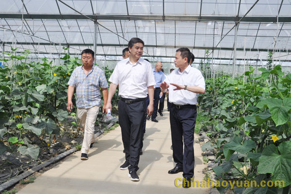 吳照明一行冒著酷暑深入田間地頭,實地查看了普惠農(nóng)業(yè)公司現(xiàn)代化綠色無公害蔬菜大棚內(nèi)長勢良好的各種瓜果蔬菜。楊捷在大棚內(nèi)現(xiàn)場介紹了普惠農(nóng)業(yè)公司目前種植的蔬菜種類,以及如何應用先進農(nóng)業(yè)管理方法進行蔬菜種植管理過程。參觀人員紛紛表示通過實地參觀,打消了疑慮,增強了信心,堅定了決心。