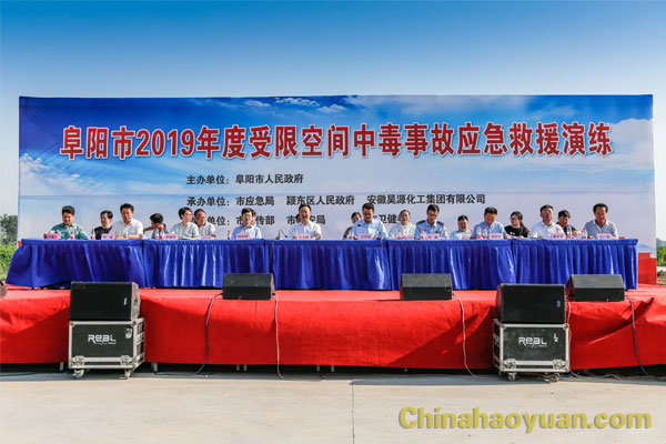 7月5日下午,阜陽市2019年度受限空間中毒事故應(yīng)急救援演練在昊源公司阜陽煤基新材料產(chǎn)業(yè)園區(qū)舉行。市委常委、副市長王玉峰,市應(yīng)急管理局長江利國,潁東區(qū)委常委、常務(wù)副區(qū)長顧中偉,市公安局副局長萬傳紅、市應(yīng)急局管理局副局長劉琮,市委宣傳部(市政府新聞辦)副主任李雅伶、潁東區(qū)應(yīng)急管理局長高文沖,安徽昊源化工集團有限公司黨委書記、董事長凡殿才,市120急救中心副主任田光宇、安徽新藍(lán)天安全技術(shù)服務(wù)有限公司總經(jīng)理張廣明出席活動,并觀摩演練。