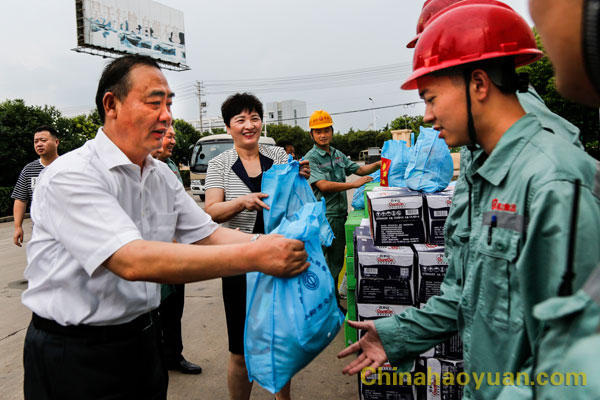 阜陽市連續(xù)高溫天氣,給人們生活、工作帶來不便。7月30日,阜陽市委副書記、市長孫正東,市政府秘書長黃琦,市總工會黨組書記、副主席房繼紅,冒著高溫酷暑來昊源公司,慰問高溫堅守生產(chǎn)一線的干部、員工。公司黨委書記、董事長凡殿才,副總經(jīng)理高玉磊、張海生,總經(jīng)理助理吳珍漢陪同。