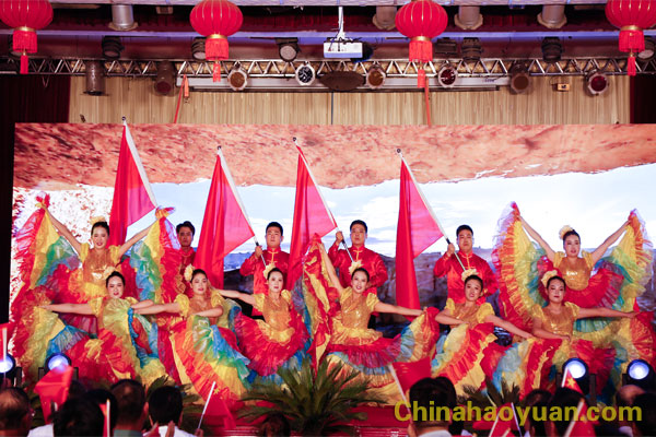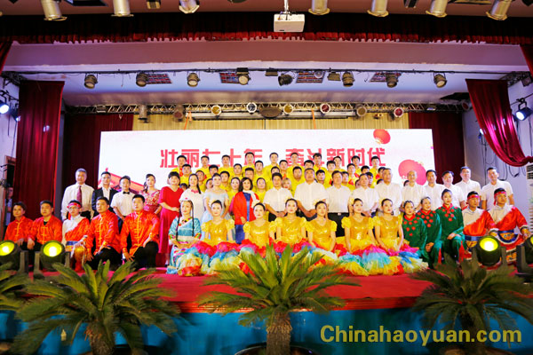 晚會結(jié)束,公司領(lǐng)導(dǎo)依次走上舞臺,向演員們表示問候,并與演員合影。
