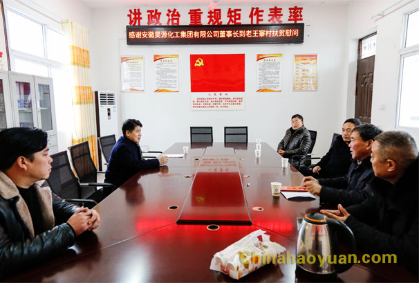 新馬集鎮(zhèn)黨委書記董俊杰向凡殿才介紹了老王寨村脫貧工作開展情況,代表老王寨村向昊源集團表示感謝。