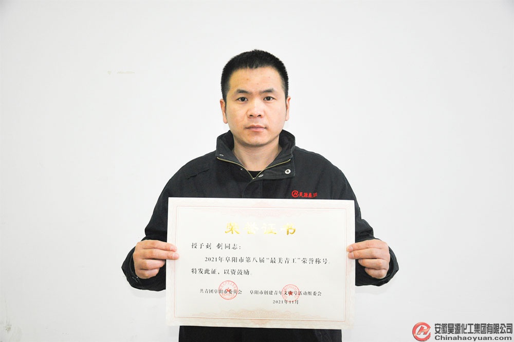 近日,昊源公司園區(qū)合成工段劉劍同志被共青團(tuán)阜陽(yáng)市委員會(huì)、阜陽(yáng)市創(chuàng)建青年文明號(hào)活動(dòng)組委會(huì)評(píng)為阜陽(yáng)市第八屆“最美青工”榮譽(yù)稱號(hào)。