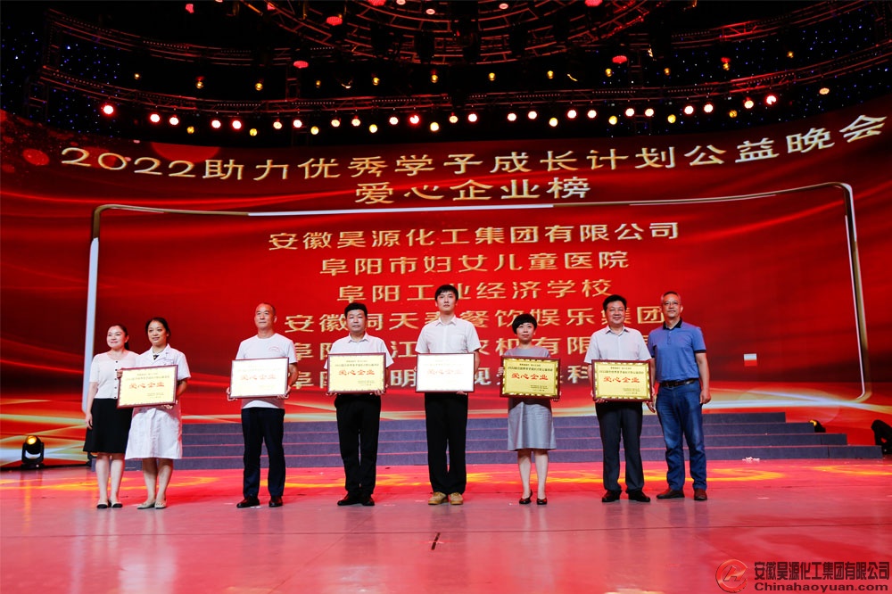 8月14日,阜陽廣播電視臺(tái)舉行了 “2022助力優(yōu)秀學(xué)子成長計(jì)劃公益晚會(huì)”,昊源公司黨委副書記、副總經(jīng)理高玉磊代表安徽昊源化工集團(tuán)有限公司出席活動(dòng)。會(huì)上,安徽昊源化工集團(tuán)有限公司被授予“愛心企業(yè)”榮譽(yù)稱號(hào),高玉磊作為企業(yè)代表為優(yōu)秀學(xué)生頒發(fā)勵(lì)志助學(xué)金。