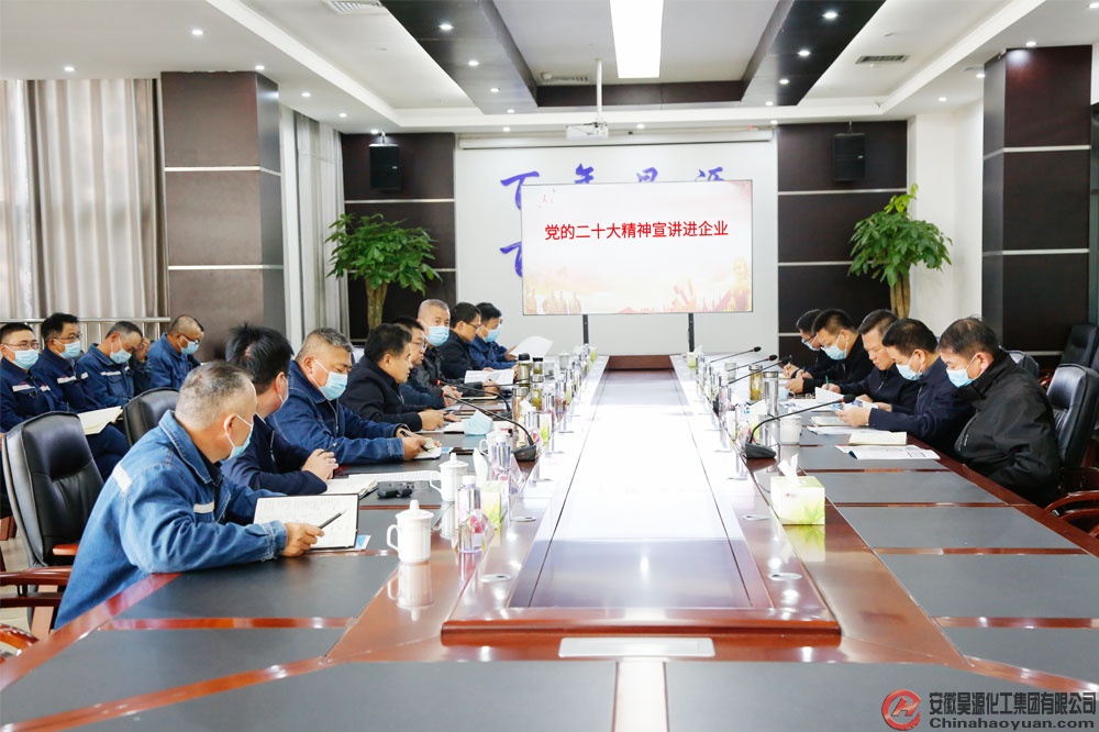 11月14日,市委常委、市紀委書記、市監(jiān)委主任章紹偉一行在潁東區(qū)委副書記、區(qū)長劉健的陪同下到昊源公司宣講二十大精神。