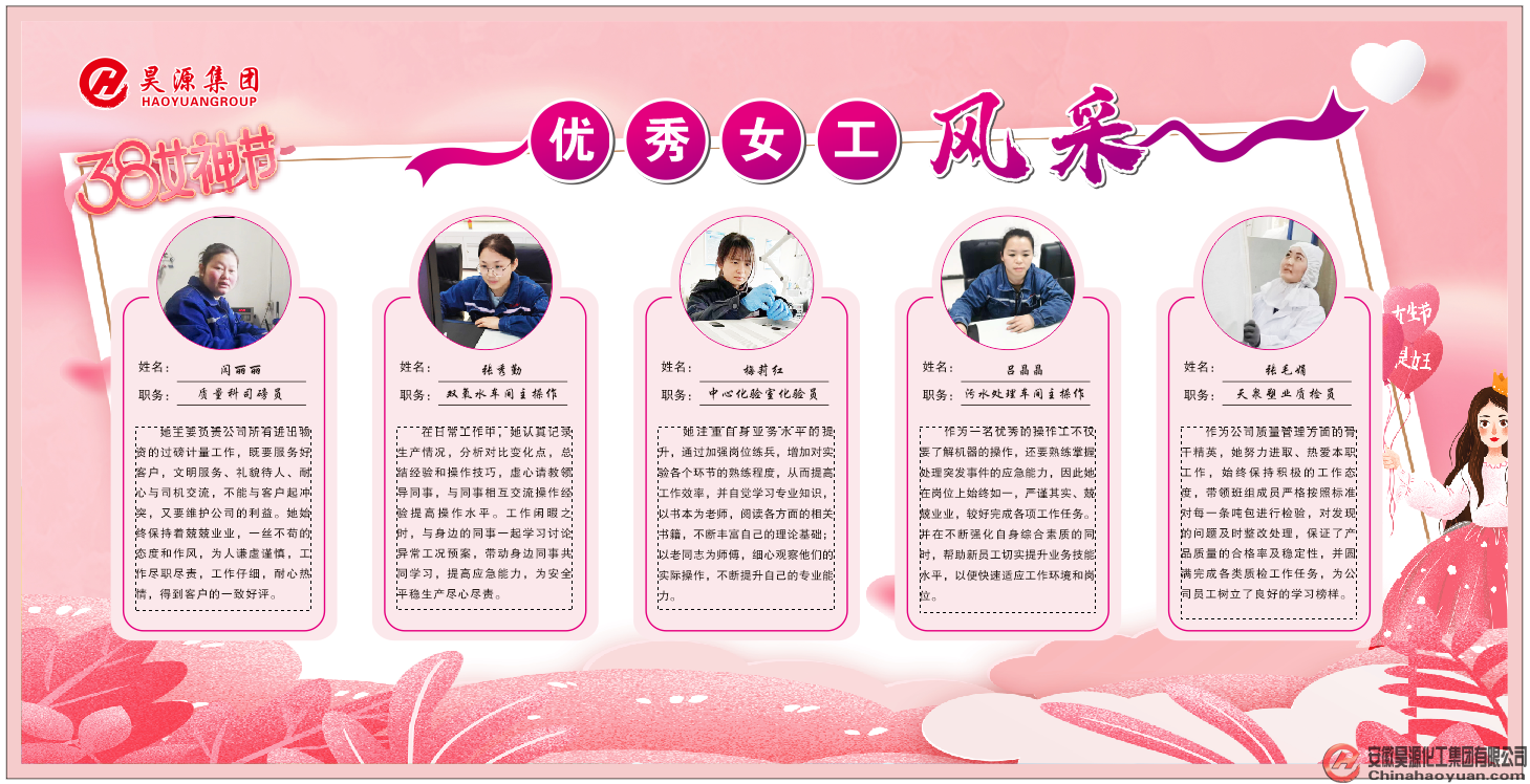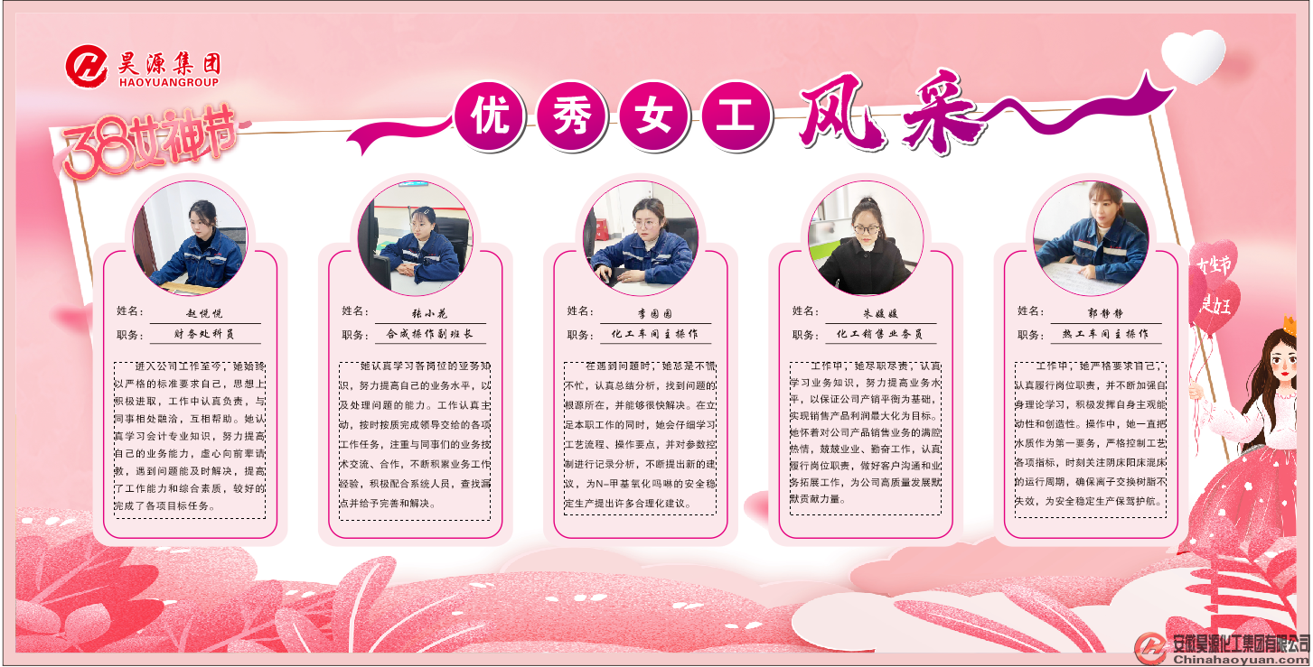 一直以來,昊源公司女員工們“巾幗不讓須眉”,以飽滿的熱情在各個(gè)崗位上默默耕耘,成為了推動(dòng)公司健康快速高發(fā)展的中堅(jiān)力量,展示了“半邊天”的靚麗風(fēng)采。