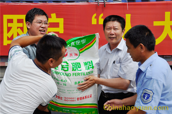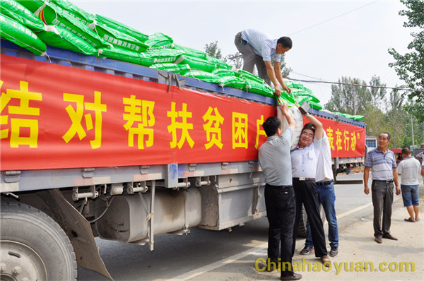 2015年8月12日,載著昊源人深情厚意的一車化肥,從昊源公司拉往馬寨鄉(xiāng)皮樓村,由昊源公司總經(jīng)理助理潘家成、工會副主席戚偉代表昊源公司親手交到潁州區(qū)皮樓村困難老鄉(xiāng)手里。