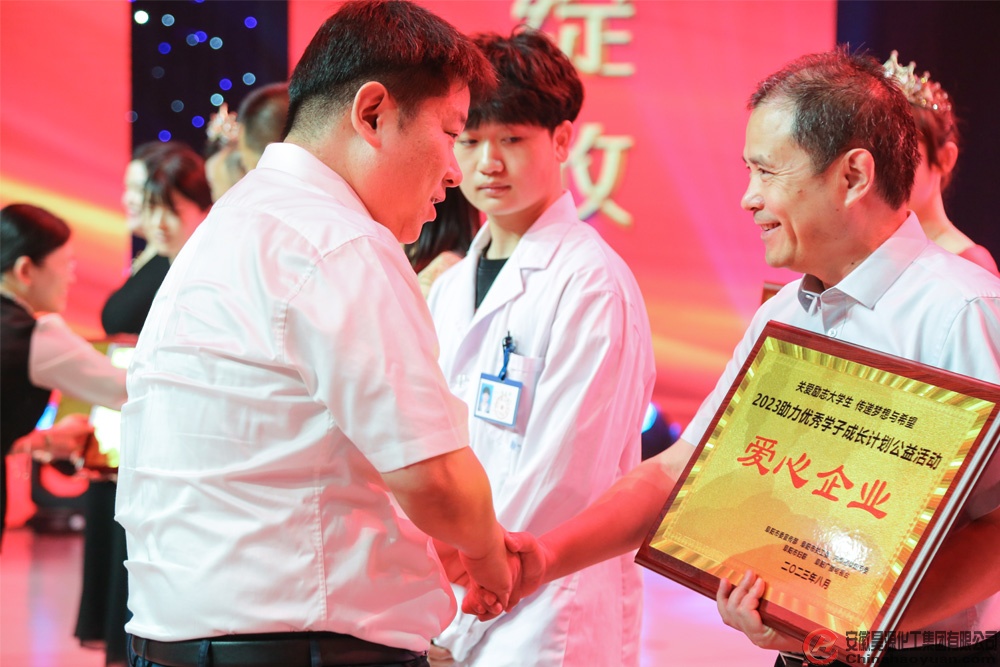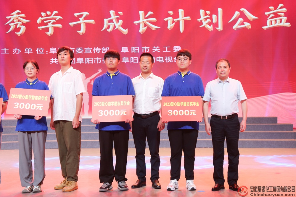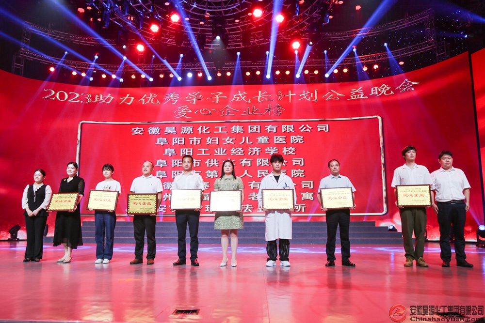 8月13日,由中共阜陽市委宣傳部、市關(guān)工委、市民政局、共青團(tuán)阜陽市委、市婦聯(lián)、阜陽廣播電視臺(tái)共同主辦的“青春逢盛世 奮斗正當(dāng)時(shí),2023助力優(yōu)秀學(xué)子成長(zhǎng)計(jì)劃公益晚會(huì)”,在阜陽廣播電視臺(tái)演播大廳舉行。公司黨委副書記、副總經(jīng)理?xiàng)罱荽黻辉醇瘓F(tuán)受邀出席晚會(huì),并為優(yōu)秀學(xué)子頒發(fā)勵(lì)志助學(xué)金。會(huì)上,安徽昊源化工集團(tuán)有限公司被授予“愛心企業(yè)”光榮稱號(hào)。