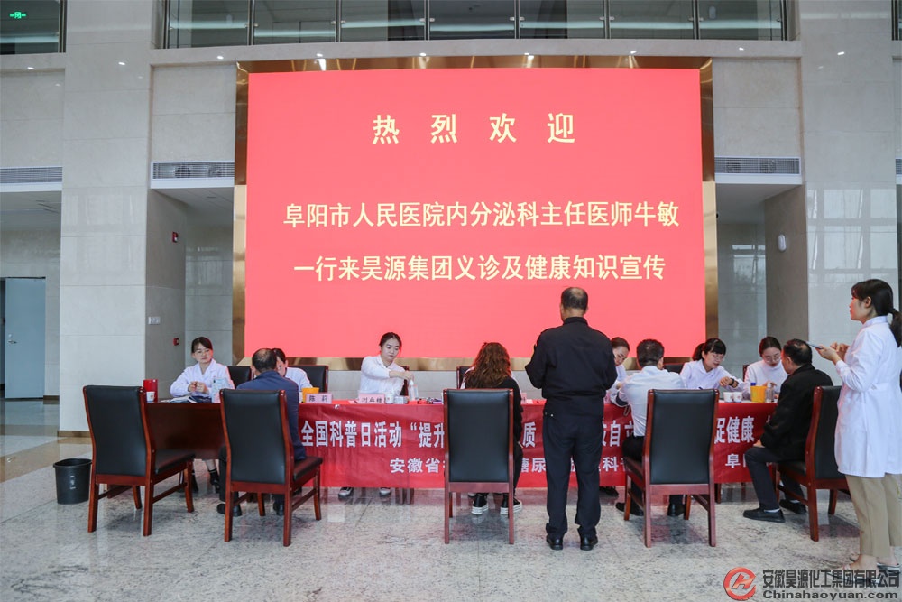為進一步普及健康知識,9月23日上午,公司工會特邀阜陽市人民醫(yī)院內(nèi)分泌科主任醫(yī)師牛敏一行8人,在昊源研發(fā)中心一樓大廳免費義診。