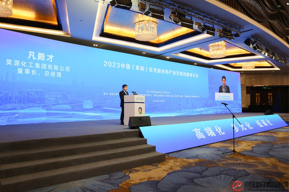 12月8日,由中國石油和化學(xué)工業(yè)聯(lián)合會主辦,阜陽市潁東區(qū)人民政府、阜陽市招商投資促進(jìn)中心、中國石油和化學(xué)工業(yè)聯(lián)合會專委會、安徽昊源化工集團(tuán)有限公司承辦的“2023中國(阜陽)尼龍新材料產(chǎn)業(yè)發(fā)展戰(zhàn)略研討會”在阜陽天筑豪生大酒店舉行。昊源公司黨委書記、董事長凡殿才出席會議并與會發(fā)言。