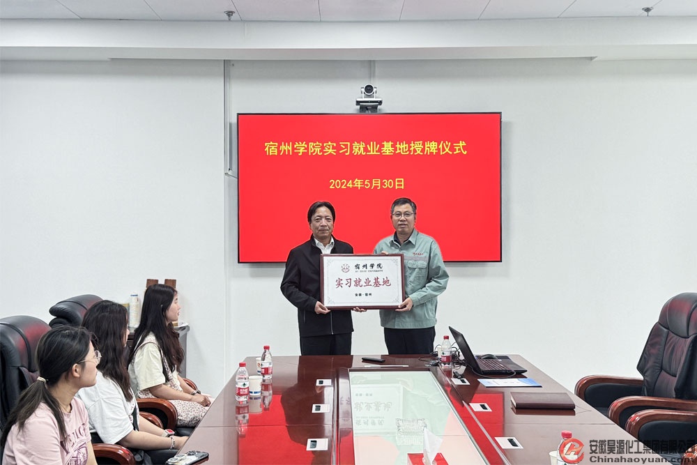 5月30日,昊源公司與宿州學(xué)院舉行聯(lián)合共建“實(shí)習(xí)就業(yè)基地”授牌儀式,宿州學(xué)院化學(xué)化工學(xué)院書記史洪偉、昊源公司總經(jīng)理助理潘家成、企管處處長(zhǎng)張明出席儀式。