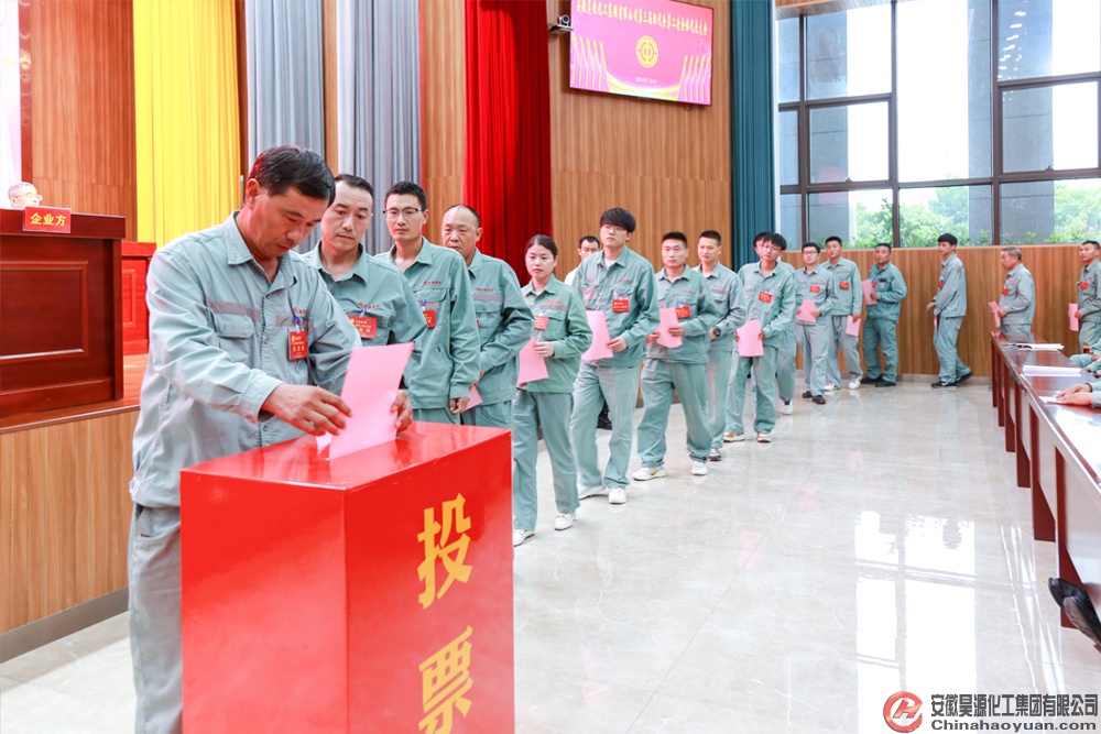 昊源公司第三屆職工代表大會第二次全體會議審議通過了董事長凡殿才同志所作的工作報告、新修訂的紀律管理規(guī)定、請假管理規(guī)定、安全管理工作報告、職代會實施細則,票決通過廠務(wù)公開細則及安徽昊源化工集團有限公司集體合同(草案)情況說明,并現(xiàn)場簽訂集體合同。