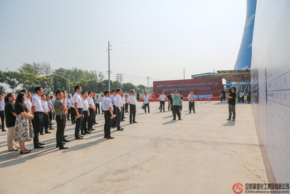 活動期間,劉玉杰、胡明文等領(lǐng)導(dǎo)聽取投產(chǎn)投運(yùn)項目情況介紹后,實地察看了昊源公司產(chǎn)40萬噸尼龍66項目一期工程生產(chǎn)車間。