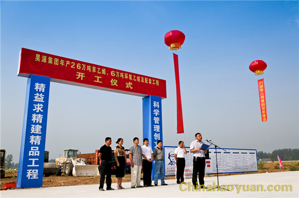 2016年8月19日上午,昊源集團年產26萬噸苯乙烯、6萬噸環(huán)氧乙烷及配套工程開工儀式在阜陽煤基新材料產業(yè)園區(qū)舉行。公司副總經理高明林、總經理助理王衛(wèi)峰及施工單位代表出席儀式。
