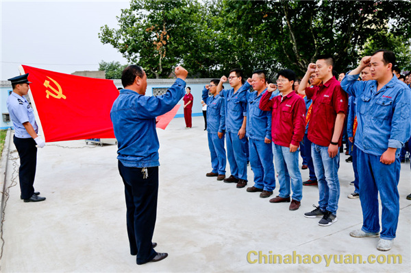 在“七一”前夕,昊源公司又有7位同志被吸收入黨,已成為中國共產(chǎn)黨預備黨員。在6月18日的公司升旗儀式上,舉行了中國共產(chǎn)黨預備黨員入黨宣誓儀式,黨紀辦主任滑海東同志領讀誓詞宣誓,航天爐黨支部王阿偉同志代表宣誓的預備黨員發(fā)言。