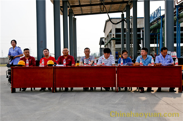 2017年6月29日下午,公司在異丙胺罐區(qū)舉行異丙胺泄漏事故應(yīng)急演練。市安全生產(chǎn)監(jiān)督管理局、環(huán)保局、消防大隊相關(guān)領(lǐng)導(dǎo)及昊源公司副總經(jīng)理張海生、總經(jīng)理助理吳珍漢現(xiàn)場觀摩演練。