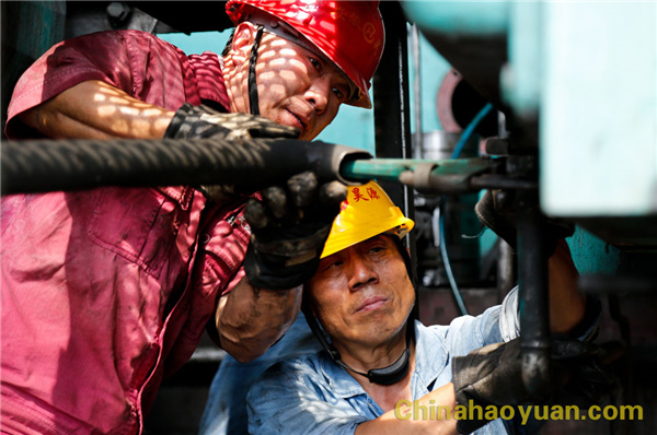 師傅們冒著高溫?fù)屝迚嚎s機(jī)