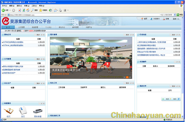 在公司領(lǐng)導的高度重視和各部門人員的緊密配合下,昊源集團OA辦公系統(tǒng)經(jīng)過北京普巴安徽分公司技術(shù)人員緊張有序地程序研發(fā)、修改完善、測試調(diào)試, 11月1日,該系統(tǒng)正式上線試運行。系統(tǒng)包含公文管理、信息管理、個人辦公、綜合辦公、郵件管理、溝通平臺六個模塊。OA辦公系統(tǒng)的成功上線將進一步提高公司現(xiàn)代化信息管理水平和決策效率。同時,將為公司的高效辦公,工作流程標準化、制度化奠定堅實基礎。